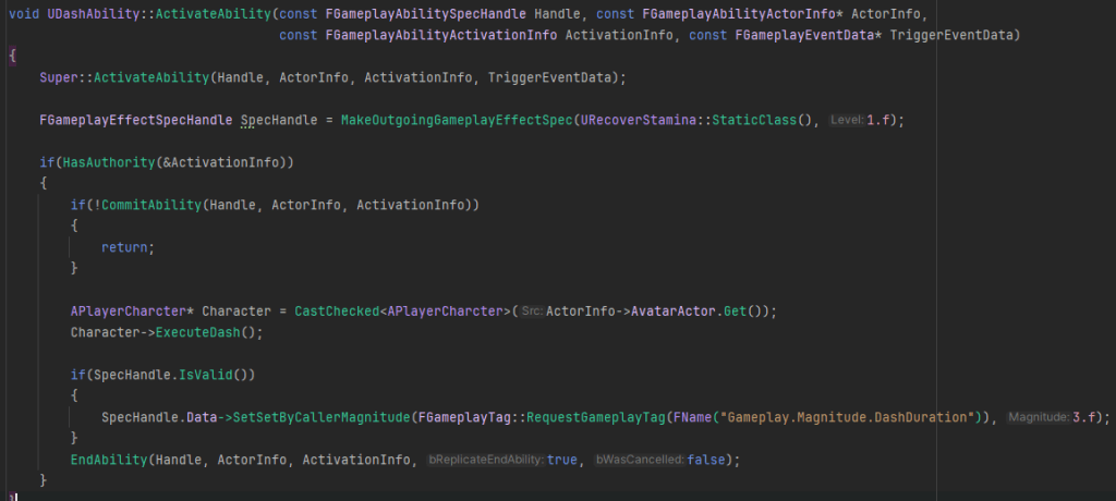 In activate ability I check if it has authority and if the ability was succesfully commited. If so the I cast to the player and call the Execute function.